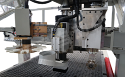 本機采用旋轉(zhuǎn)鋸主軸自動切割,切割速度均勻,自動完成由縱向更換橫向切割,切割效率高,主軸噪音低,修邊無毛刺、無崩邊,適合大批量生產(chǎn)工藝。